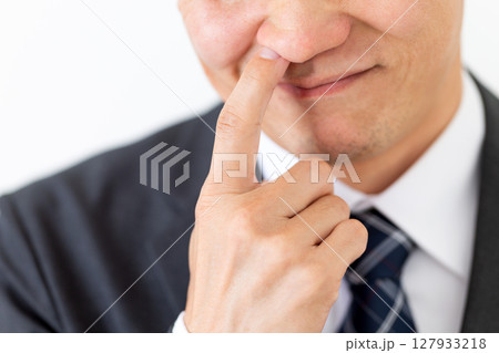 鼻をほじるスーツを着たミドル男性ビジネスマン