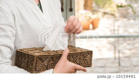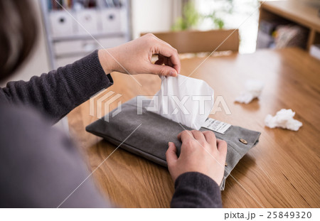 ティッシュペーパー (ボディパーツ 顔なし 人物 シニア 花粉症 高齢者 アレルギー 鼻炎 病気)