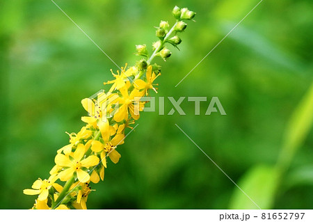 自然 植物 キンミズヒキ、鮮やかな黄色の花を集めた穂が目立つ野草です。この草の実も『ひっつき虫』になります