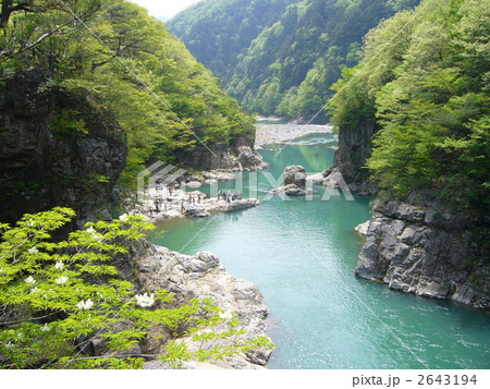 新緑の龍王峡(日光国立公園) むささび橋から下流を望む