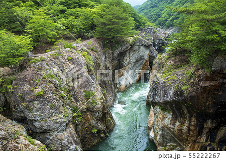 新緑の龍王峡(日光国立公園) むささび橋から上流を望む