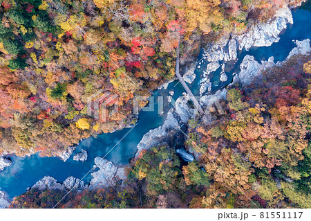 空撮「栃木県」紅葉に染まった龍王峡