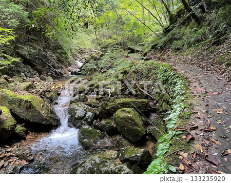 二段滝に続く遊歩道。広島県安芸太田にある龍頭峡。