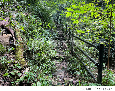 二段滝に続く階段。広島県安芸太田にある龍頭峡。