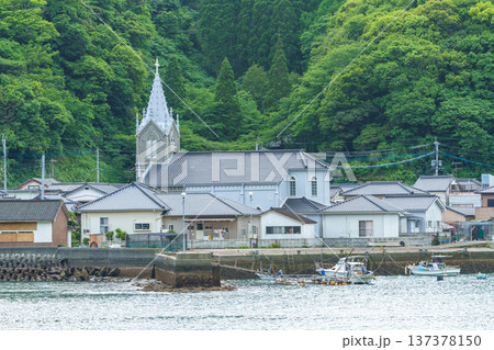 熊本県天草市 﨑津集落 海と教会のある漁村の風景