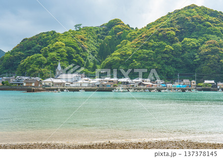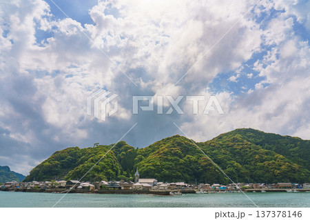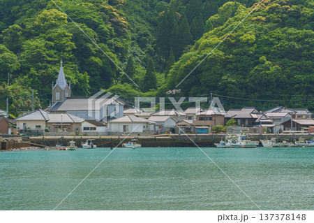 カトリック﨑津教会と﨑津集落を望む 世界遺産 【熊本県天草市】