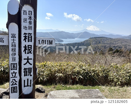 芦ノ湖スカイライン_大観山_ターンパイクから見た芦ノ湖と富士山
