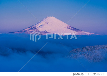(神奈川県)降雪と雲海に包まれた箱根大観山から望む富士山