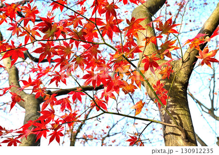 御坂山地のパノラマ台の森 真赤なヤマモミジの紅葉