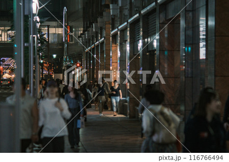 大阪の繫華街で趣味の写真撮影を楽しむ若くて可愛大阪の繫華街で趣味の写真い女性イメージ|大阪府内で撮影