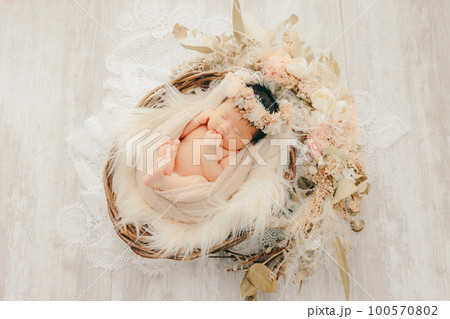 高級ホテルの客室で眠る日本人の男の子の赤ちゃん