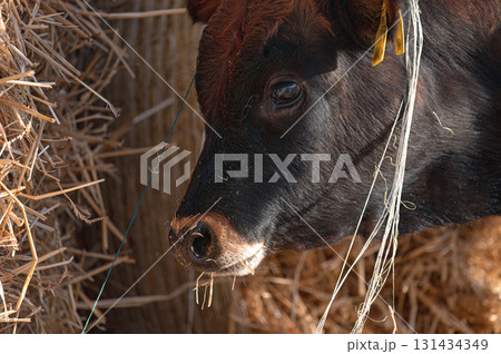 Close-up of a Cyprus cattle breed eating hay. Akrotiri marsh, Cyprus