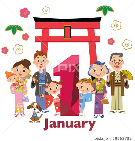 1月 三世代家族 鳥居 新年
