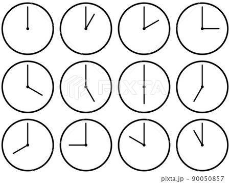12時間の時計と切り抜ける白い背景(1時〜12時)