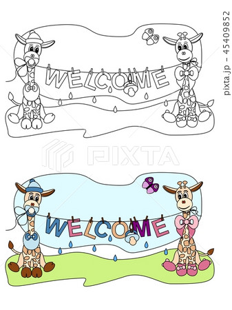 Two giraffes holding washing line with text