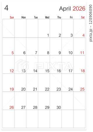 Calendar April 2026 flat style isolated on white background, Save clipping path.