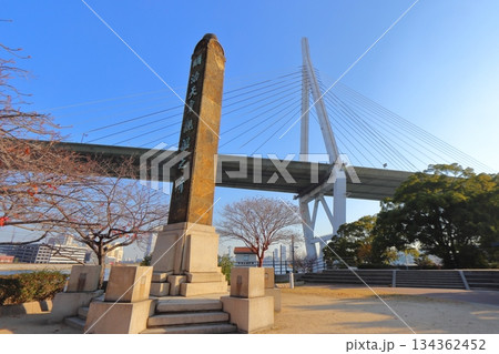 天保山公園(世界帆船まつり記念碑)と天保山大橋