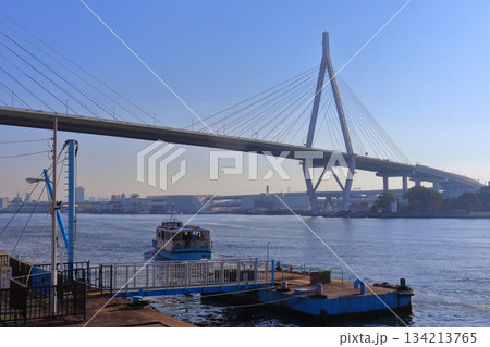 天保山大橋下を航行中の大阪市公営渡船 (天保山渡船場)