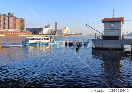 安治川を渡る渡し舟の乗船場(天保山渡船場)