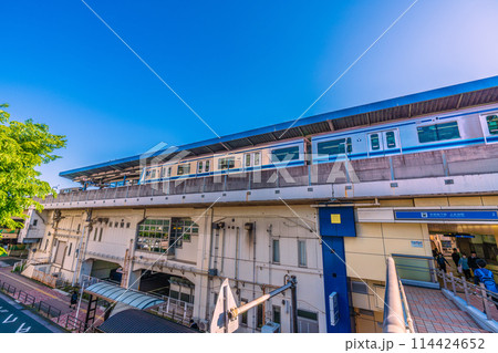日本の横浜都市景観 横浜市営地下鉄グリーンライン 中山駅出入口1などを望む