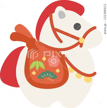 年賀2026 干支 午年 年賀状素材 馬の土鈴の可愛い和風イラスト 縁起物 正月飾り 松竹梅