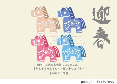 年賀 年賀状 2026 馬 午 だるま 達磨 干支 正月 飾り かわいい デザイン イラスト素材