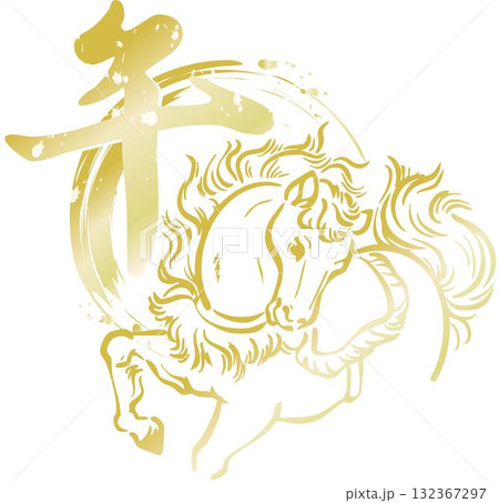年賀2026 年賀状2026 筆文字 馬 午 干支 墨絵 水墨画 日本画 手描き イラスト素材