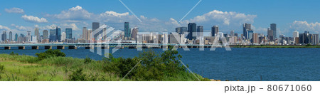 大パノラマ 大阪梅田と中之島ビル群そしてEmbraer E170STD 隠岐-伊丹
