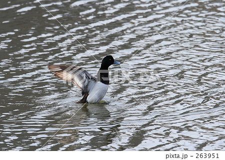 水浴びをする潜水ガモ【スズガモ】