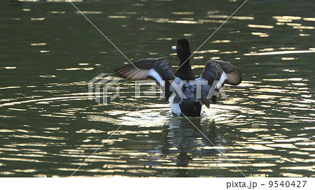 スズガモの雄が羽を広げる様子 バーナビー ブリティッシュコロンビア カナダ