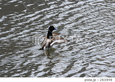 生き物 鳥類 水鳥の水浴び、コスズガモ(オス)