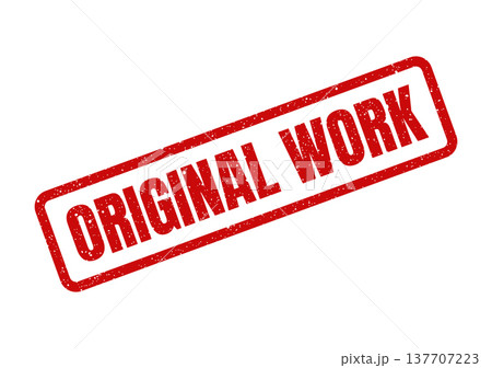 Grungy rectangular seal with ORIGINAL WORK text, signifying unique creative content and intellectual property