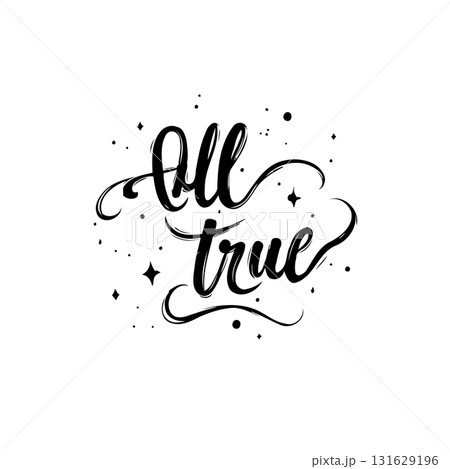 Artistic lettering illustration of all true quote with star and dot accents