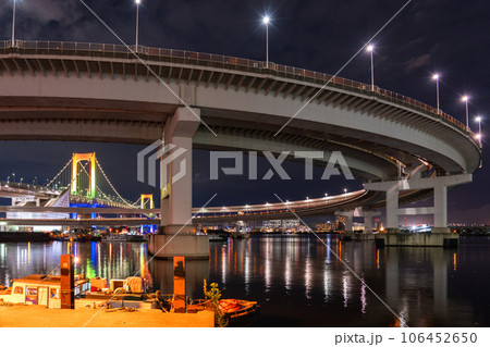 暮れる東京ウォーターフロントとレインボーブリッジ
