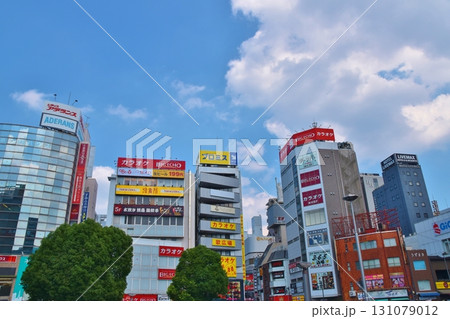 日本の東京都市景観 池袋駅東口。右奥に黄色いイケバスが見える