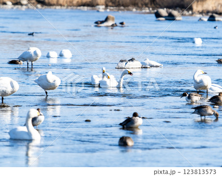 首都圏の荒川で越冬する優雅で美しい白鳥たちとカモ