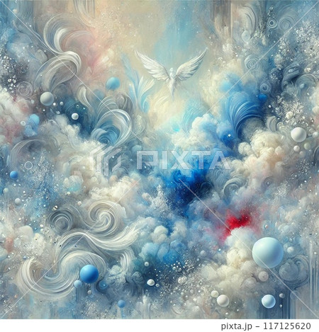 2025色彩のカレンダー 青い天使の幻想的な12月 一年の締めくくりを天使のイラストで表現してます。