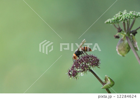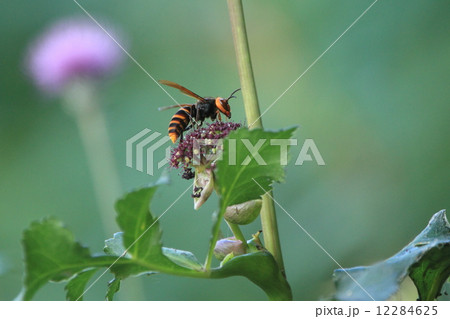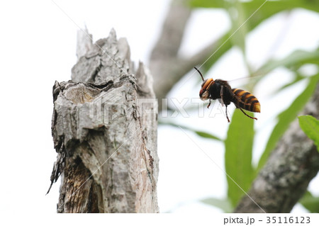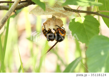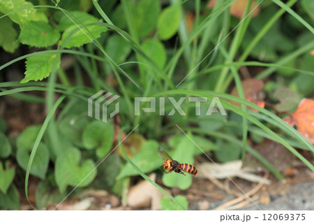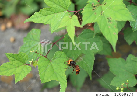 生き物 昆虫 コガタスズメバチ、オオスズメバチより一回り小さいスズメバチ。姿はオオスズメバチそっくりです①