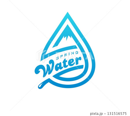 Spring water icon, blue droplet with mountain