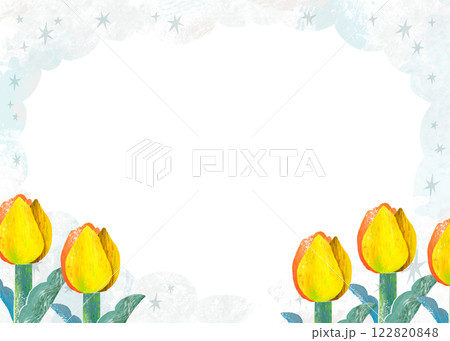 黄色のチューリップと雲のファンタジックな囲みフレーム