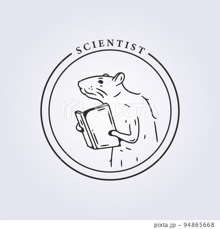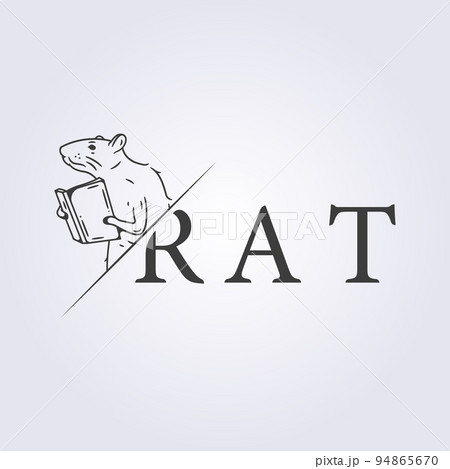 clever rat reading book logo line art vector illustration design, line studying mouse mascot
