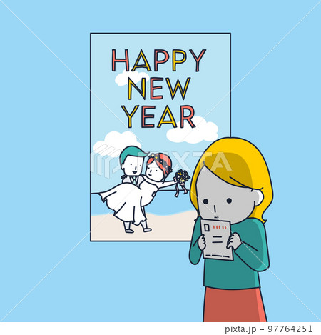 結婚しました!の年賀状でマウントをとられる女のイラスト素材