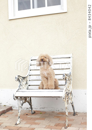 白いベンチとトイプードル