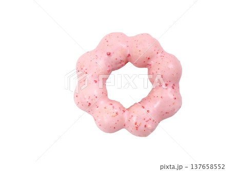 イチゴ味のドーナツ、ストロベリードーナツ【白背景・切り抜き】