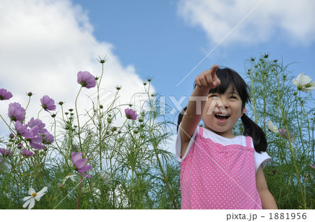 刈り取られた花をブーケにしてかわいいポーズの女子