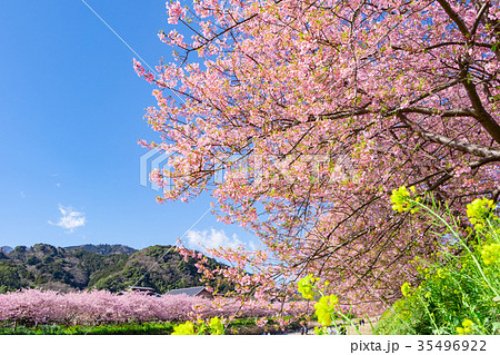 河津桜 桜 早咲きの桜 伊豆 静岡 菜の花 サクラ 画像素材 コピースペース 背景素材 文字入れ
