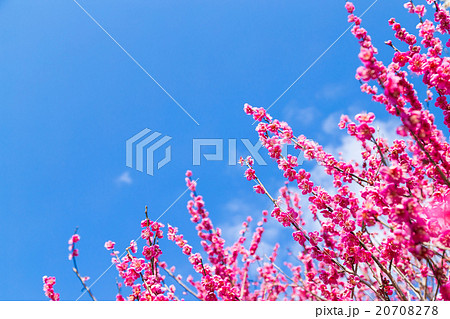 青い空と梅 空 白梅 白い梅の花 梅林 梅の林 たくさんの花 春の観光スポット