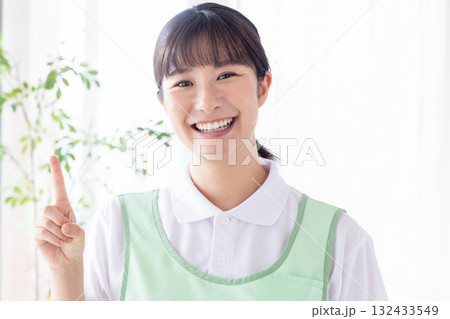 ミドル女性 ヘルパー 保育 指差し