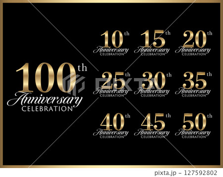 周年数字と記念日お祝い用のロゴデザインのゴールドバナーセット