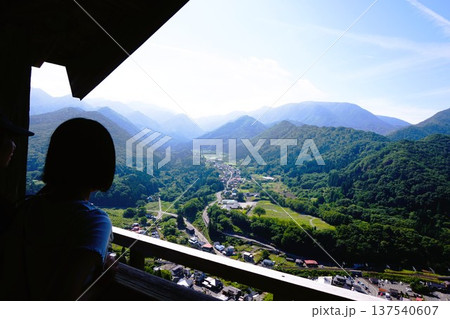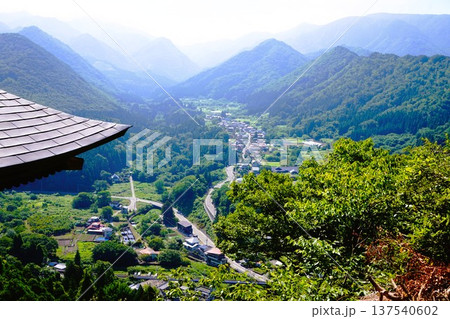 山形県 山寺 立石寺(りっしゃくじ)立大堂から山寺駅を見下ろす